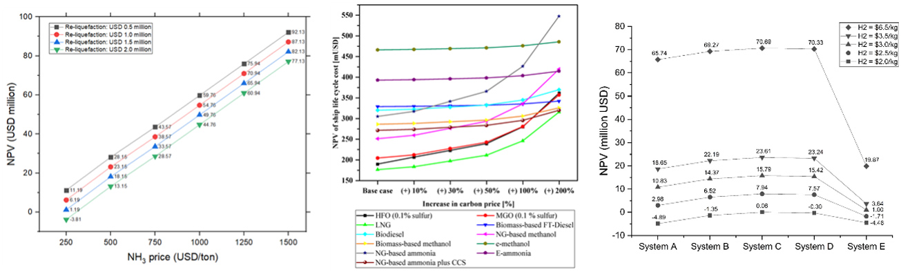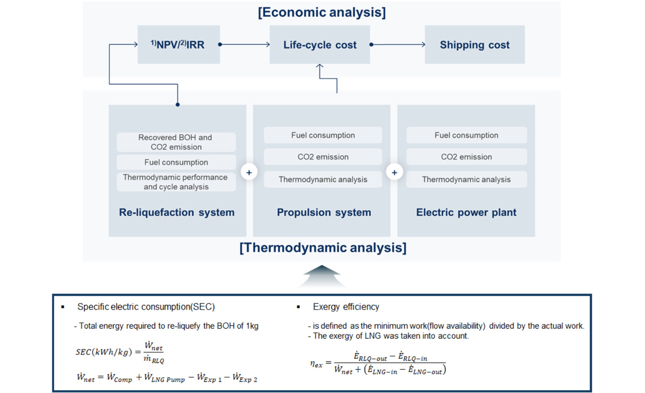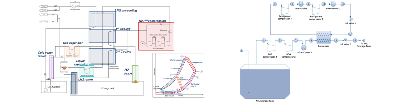In line with the global carbon neutrality goal, it is necessary to build an integrated value chain of various energy vectors such as LNG, LH₂, NH₃, LCO₂, and e-fuel. LNG is being converted to -162℃ liquefaction, double-insulated tank use, and NH₃/LH₂ mixed-use facilities. LH₂ is being developed to -253℃ liquefaction, vacuum-insulated container use, and 4,000m³-class dedicated vessel. NH₃ can be stored at room temperature, acts as a hydrogen carrier, and is used for turbine co-firing. LCO₂ is being developed to link with CCUS, -56.6℃ liquefaction, marine storage, and mineralization technology. e-fuel has the advantage of renewable energy-based synthesis and utilization of existing infrastructure. Each energy source has its own advantages and disadvantages in terms of economic feasibility and environmental friendliness, and the market is expected to grow to KRW 22 trillion by 2030.